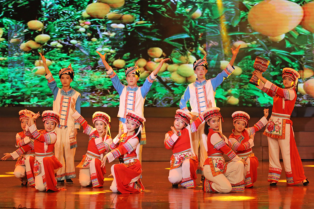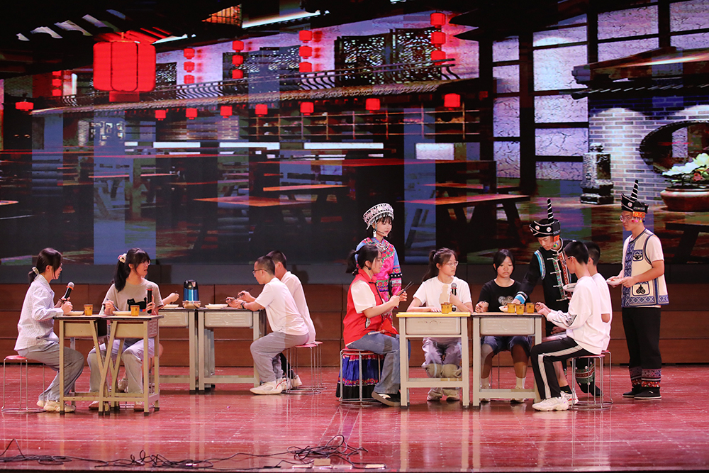 当《赏城市美景,探共富密码》以攀枝花特色农业园区为表演背景,同学们化身“带货主播”,用网络直播卖芒果的方式揭开共同富裕的实践篇章;《穹顶之隙・文物的夜行诗》——当千年文明的星火坠入青春创意的星河,我们循着时光裂隙,打捞散佚的文明密码;以弥渡山歌为引,《山歌欢聚芒果熟》将攀枝花特色农产品幻化成跃动的舞蹈语言,在旋律与舞步中奏响一曲独具风味的丰收赞歌。