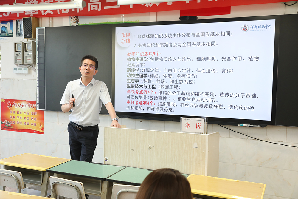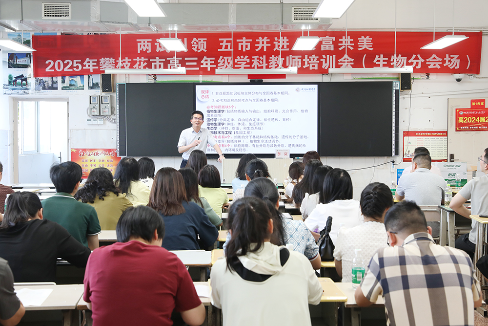 此次培训聚焦数学、化学、生物三大学科,由攀枝花市教育和体育局精心策划并组织实施,特邀成都市教育科学研究院中学数学教研员、成都市教育学会理事、成都市教育学会中学数学专委会秘书长苏文玉;成都市石室中学化学教师、化学竞赛主教练、国家集训队金牌教练蹇磊;成都市树德中学生物教研组长、成都市生物中心组成员、成都市优秀班主任、优秀青年教师、四川省赵广宇名师鼎兴工作室成员,高考培训专家、人社部特培专家库成员李应等3位知名专家为全市高三教师提供科学的备考策略与实用的教学建议。