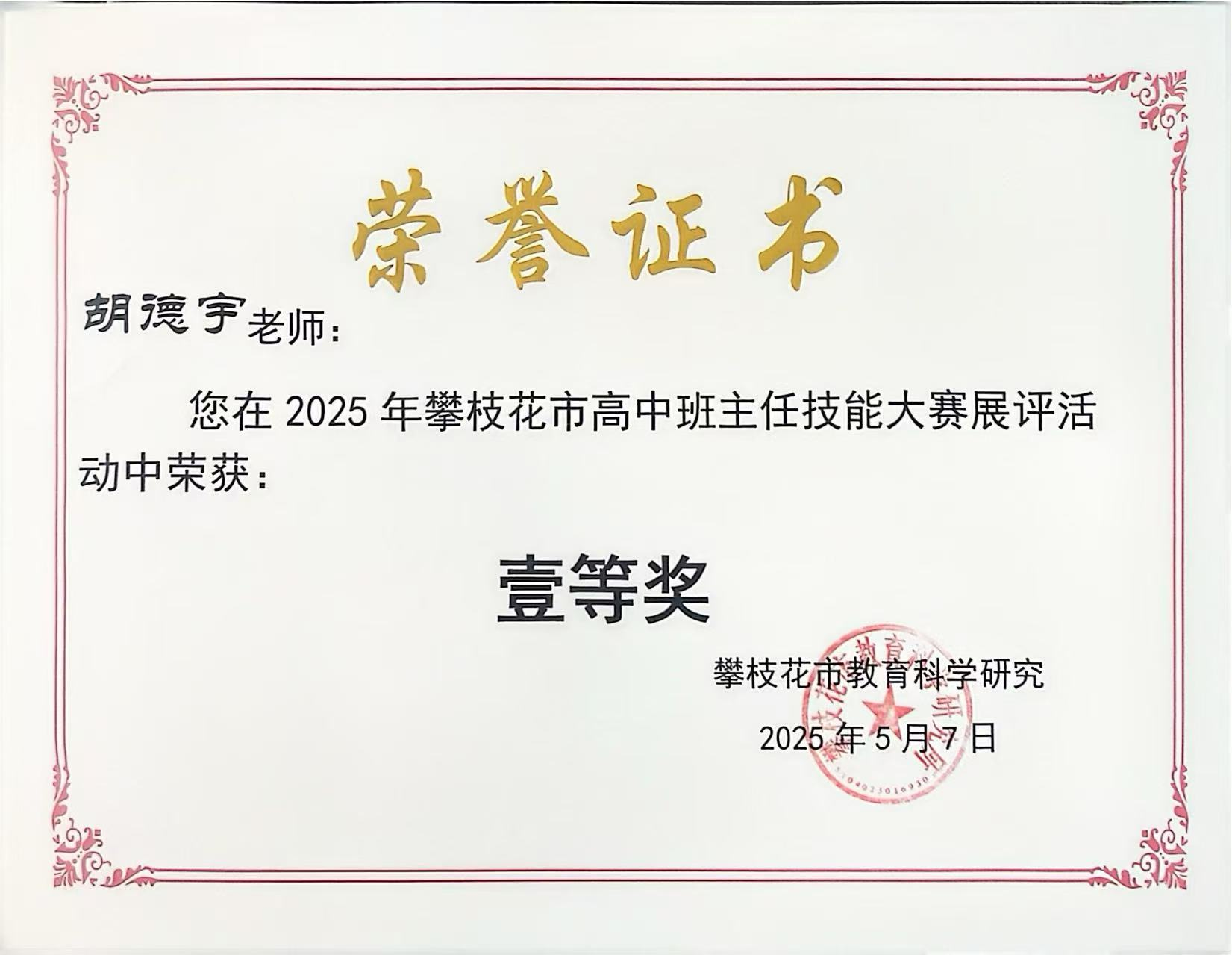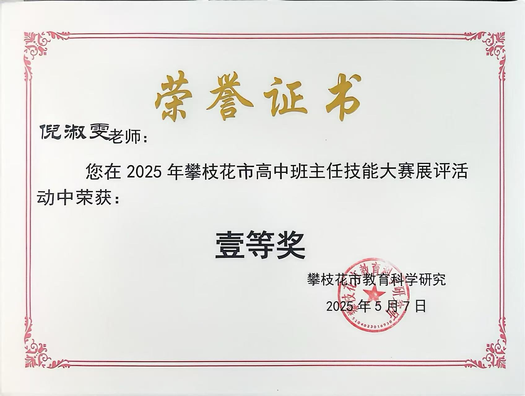 近日,由攀枝花市教育科学研究所举办的2025年高中班主任技能大赛展评活动圆满收官。本次大赛以“基于课标,精准教学,提质增效”为主题,聚焦班主任核心能力提升,全方位考察班主任的教育智慧、应急处理能力和德育创新水平,全市各高中学校共推选13名优秀班主任同台竞技。