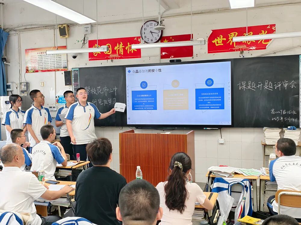 课题研究小组分工合作,简明扼要地介绍研究的背景与方法,自信大胆地畅想研究的成果与成效,既展现三中学子不满足、永追求、敢担当、能创新的精神风貌,也呈现三中学子知行合一、求真务实的严谨学风。