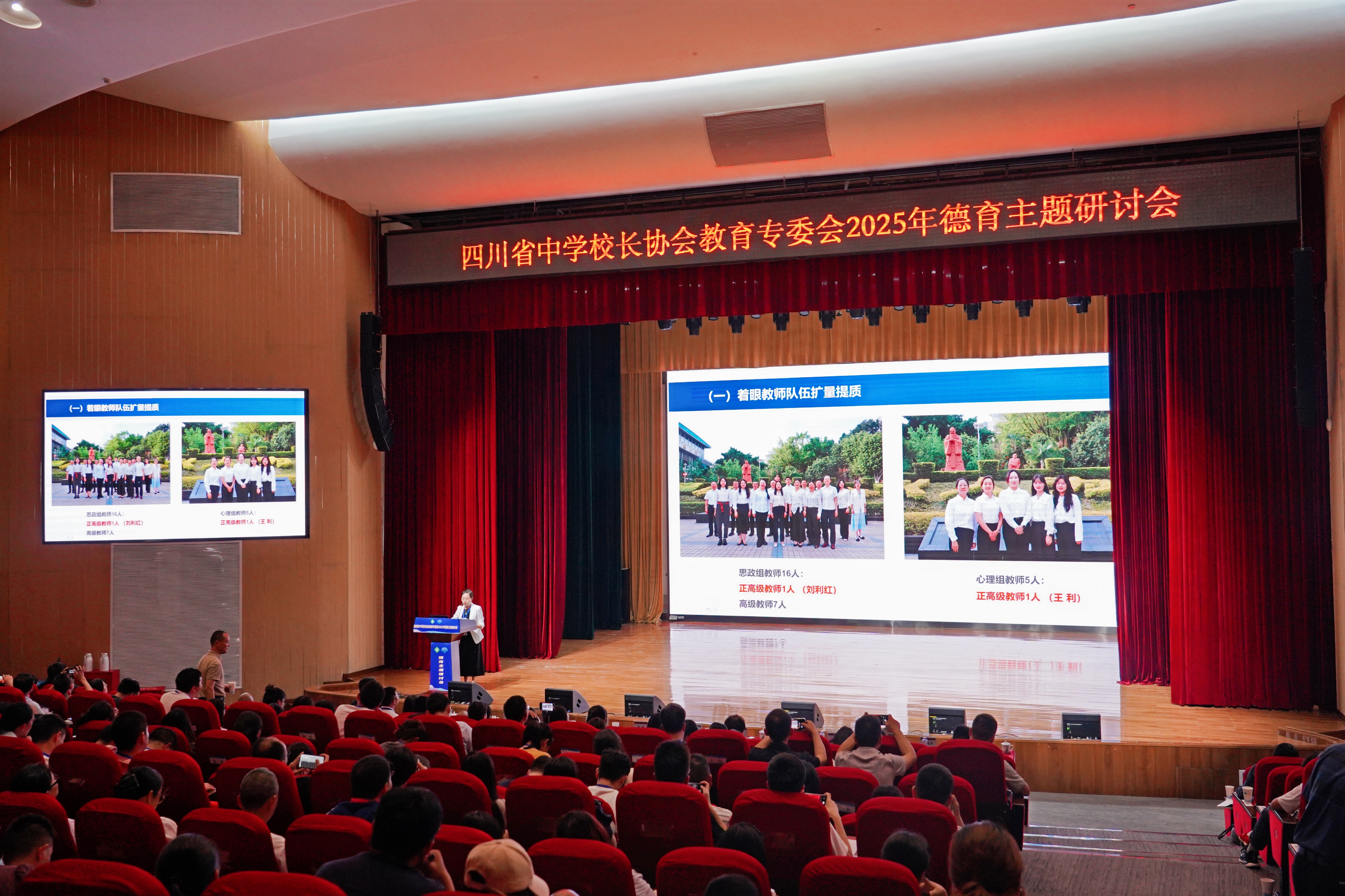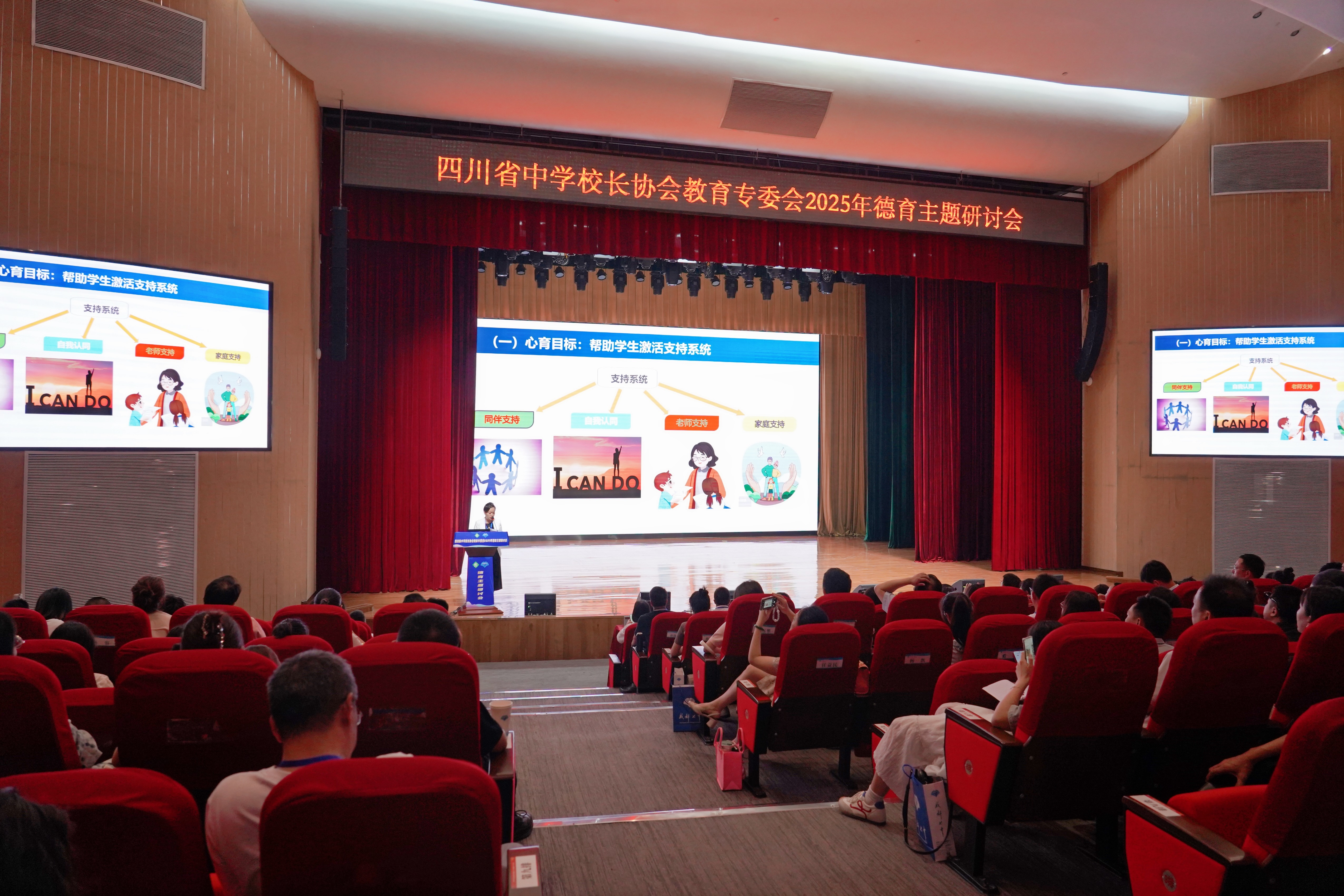 在专家讲座环节,三场干货满满的专题报告与省级课题分享将研讨会推向高潮:成都七中副校长、高新校区执行校长王雪梅的“价值立校”实践、张皓教授“慧相处”的破局之道、秦江老师“四自德育”的创新探索,最后攀枝花三中“大心理”建设的课题成果,提供了从理论到实践的全景式启迪。