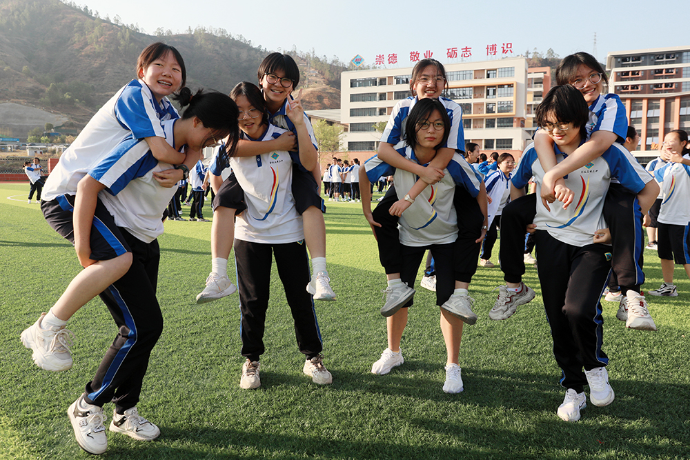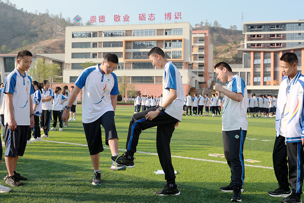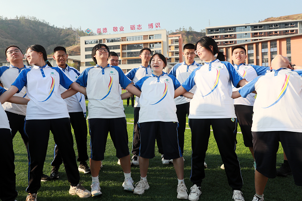 “5人4脚”“8人6脚”……随着指令发布,各小组迅速行动,通过背起、单脚站立等方式完成高难度组合。同学们脑洞大开,默契配合,在欢声笑语中突破自我;主动沟通,换位思考,在实践中领悟解决人际矛盾的关键要素,展现了集体的智慧与凝聚力。