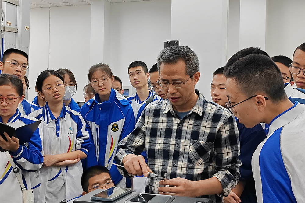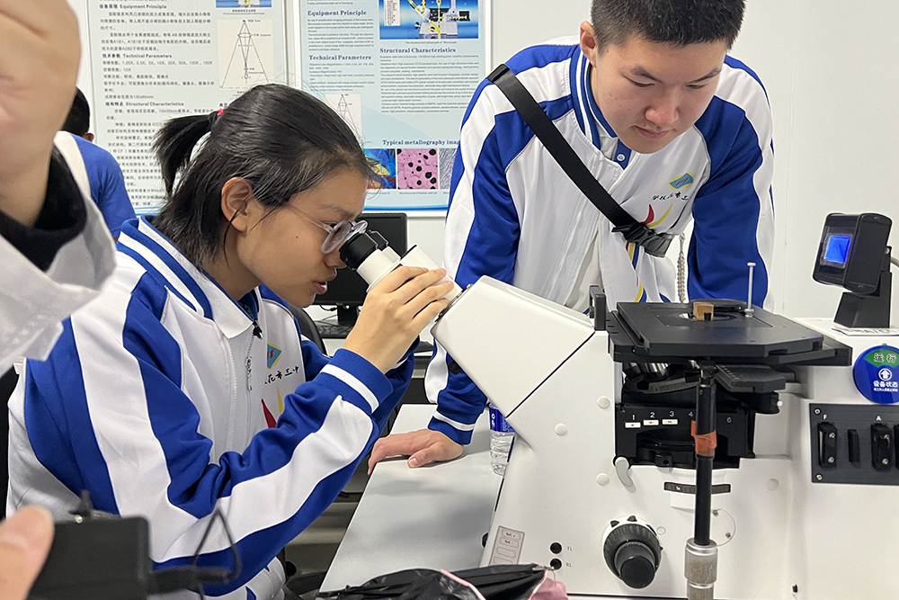 在分析测试中心的扫描电镜室,研究员黄洁老师为大家介绍了每一台仪器的作用,科普了相关知识。她耐心讲解了扫描电镜在科研检测中的重要作用,并让同学们亲自体验观察显微镜下的金属微观图。如此尖端的高科技设备,让同学们大开眼界,纷纷感叹科技的神奇与伟大。