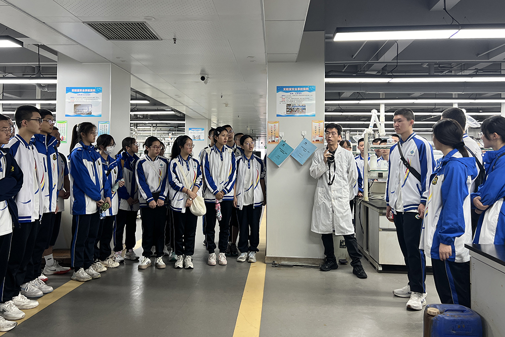 为深化素质教育,拓宽学生科技视野,激发学生对前沿科学的探索热情,2025年5月25日,校党委委员、副校长税荣昌,德育科科长甘天春,校团委书记李静,高2027届年级副主任郑玉,以及50名怀揣着对科学憧憬的高2027届学子,齐聚钒钛资源综合利用国家重点实验室(攀钢研究院),在国家重点实验室办公室主任苗庆东老师引领下,开启了一场神奇的科技研学之旅,近距离感受“国之重器”的魅力。