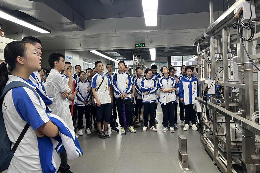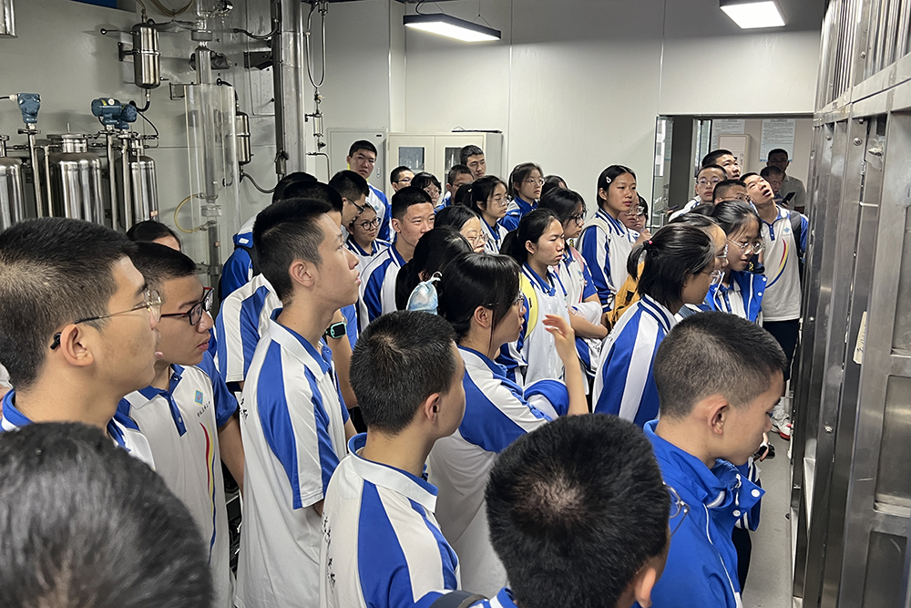踏入实验楼7楼,映入眼帘的是一系列先进的废气废水环保处理设备。正在岗位上的研究员王建山老师,为师生们详细科普了废气废水处理的流程原理,以及设备各部位的“分工”。同学们惊叹于错综复杂的管道中,灰尘与有害气体被逐一“降服”。在处理设备旁,王老师又逐一介绍了钒、钛的应用领域,其中厚度仅为0.015毫米的合金手撕箔材,更是让同学们啧啧称奇,纷纷感叹科技的力量。