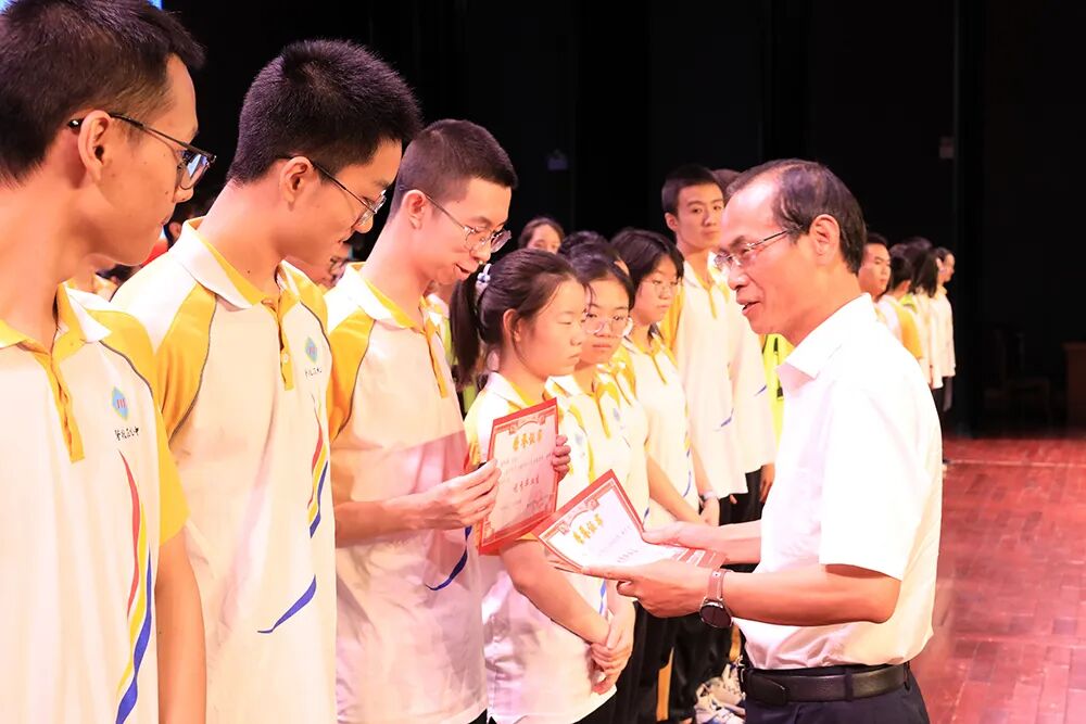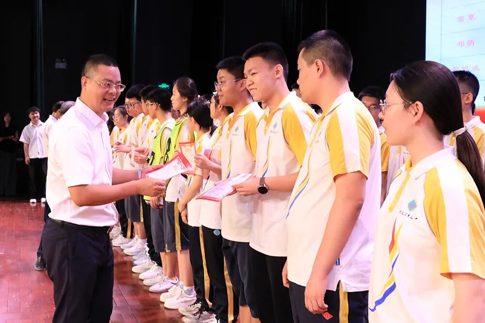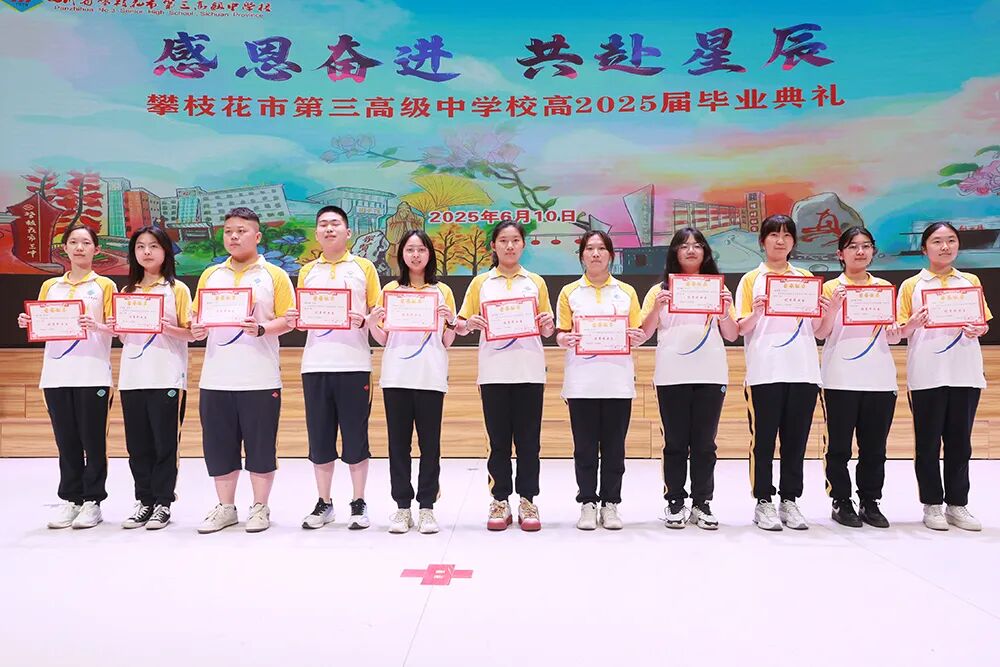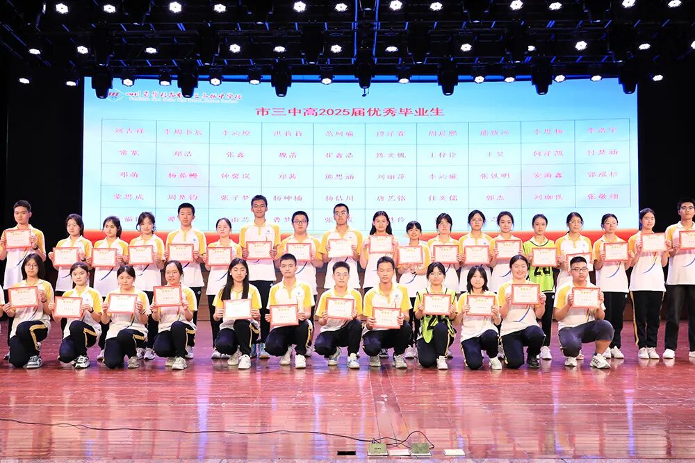 青衿之志,履践致远,书山勤径登绝顶;白首方坚,德才兼修,学海无涯驾长风。税荣昌副校长、伍学文副校长宣布了《2025届优秀毕业生名单》,优秀毕业生们依次登台,从校领导和年级主任手中接过荣誉证书并合影留念。这抹亮色,是青春奋斗最炽热的勋章,希望受表彰的优秀毕业生珍惜荣誉,发扬成绩,戒骄戒躁,继续发扬“不满足,永追求”的三中精神,以一流的成绩,为母校争光,为人生添彩。