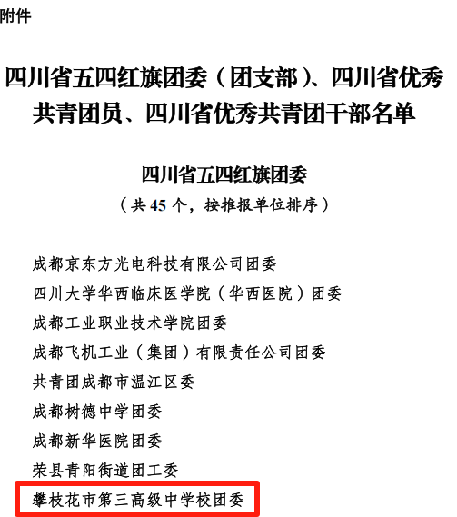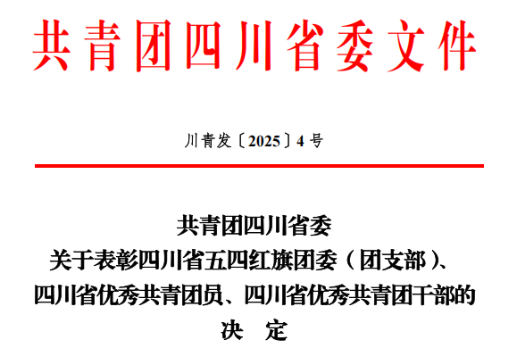 近期,共青团四川省委、四川省青年联合会启动2025年“四川青年五四奖”表彰工作,经推荐、评审、公示等程序,市三中校团委荣获“四川省五四红旗团委”表彰称号!这是全省基层团组织的最高荣誉之一,不仅是对校团委工作的充分肯定,更是对市三中坚持立德树人、全面育人所取得成效的生动印证。