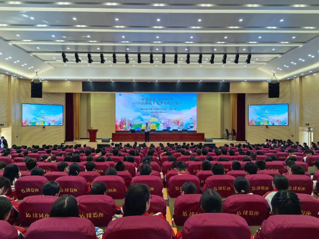 受丽江市第一高级中学校邀请,10月18日,攀枝花高俊鹏教育体育专家团队工作室领衔人赴丽江市参加丽江市第一高级中学校120周年校庆学术论坛,并开展专题讲座《智慧备考丽江辉煌——2026届高考备考策略及建议》,活动由丽江市第一高级中学校副校长孔维涛主持,高三年级800余名师生参加。